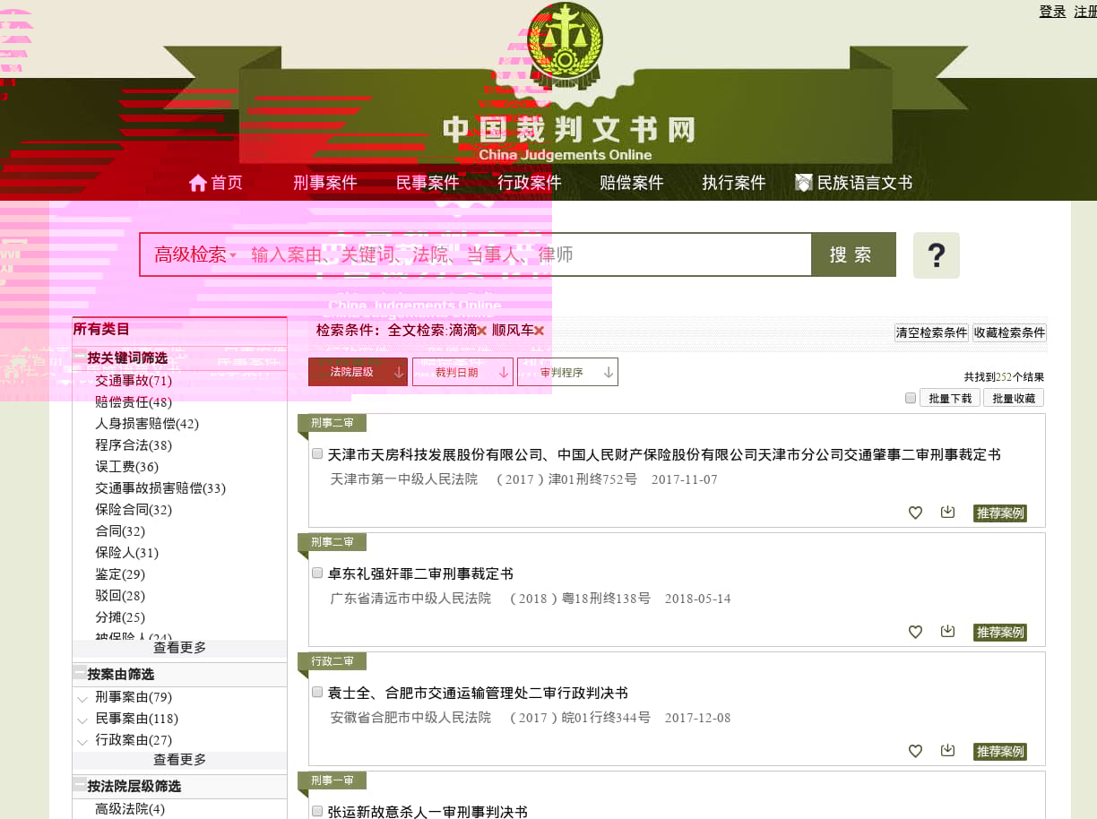 讽刺的是,搜判决书的时候,滴滴这个词经常出现在“一滴滴血”这样的词组里,这是多么巧合而精确的隐喻。