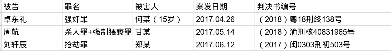 表里的三名被告均是滴滴顺风车司机,受害人均为顺风车用户,案发均在顺风车搭乘途中。 第一条,被害人女性,只有这15岁,被强奸。 第二条,被害人女性,30岁,被强制猥亵后,又被“抛弃至公路边涵洞下”,最后“机械性窒息死亡”。 第三条,被害人被司机暴力抢劫。 有没有觉得第1、2条和我们在空姐遇害以及最近的乐清案中看到的惨状非常相似? 有没有觉得,看到第3条的抢劫这种暴力犯罪时,心里都已经觉得不是很严重了? 这就是滴滴顺风车上发生的事情所留给我们的心理预期。 潜意识里,似乎坐顺风车被抢已经不是很坏的情况了。