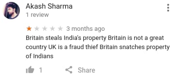 其实国家貌似都不能被打分,但是英国很不幸的有一个条目是Great Britain,估计被Google漏了,于是各路吐槽可欢了,尤其是三哥。